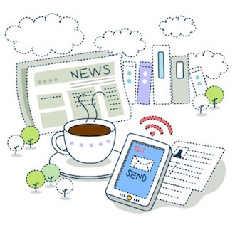 Students can listen to the audio on their smart phones and access most of the content for free. Teachers can handou the print version have students listen access the media at home.